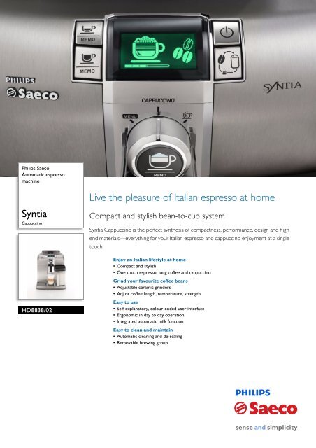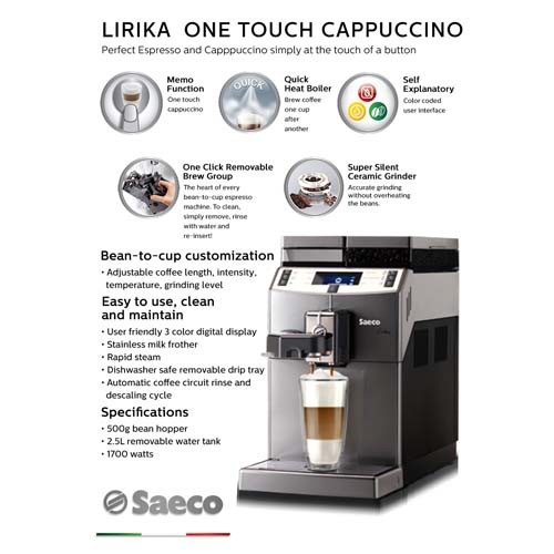 1 from From a shot of espresso to a café lungo, cappuccino or latte macchiato with fresh frothed milk from the integrated milk frother. The saeco xelsis espresso machine from philips can craft 15 different espresso and coffee drinks. This also means that the difference between latte macchiato and cappuccino in terms of saeco is only the amount of milk and coffee. Saeco lirika macchiato 10004477 automatic coffee machine silver 1850w genuine. Saeco coffee machines have all the prestige of one of the reference brands in the sector of coffee machines for both domestic and catering. Find great deals on ebay for saeco coffee machine. Possibility of preparing 2 drinks at the same time. Saeco hd 8763/01 minuto one touch cappuccino coffee automactic in black finish.